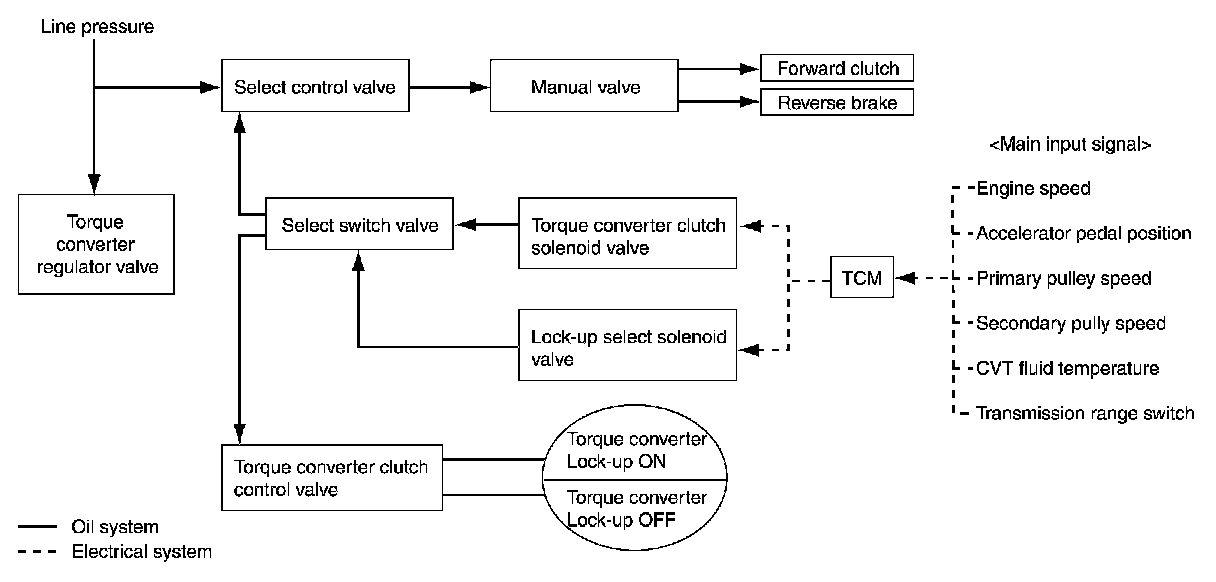 - When shifting between "N" ("P") ==> "D" ("R"), torque converter clutch solenoid controls engagement power of forward clutch and reverse brake.