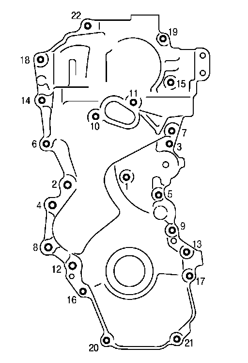 Tighten all bolts are in two stages to specified torque in numerical order as shown.