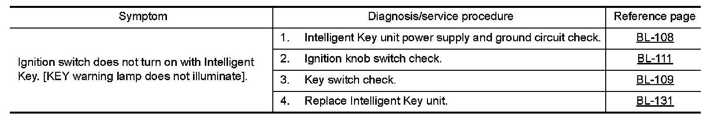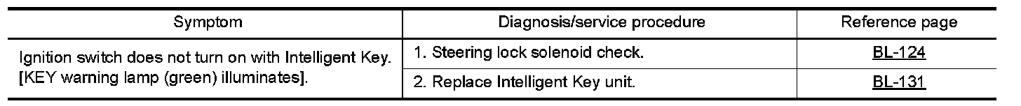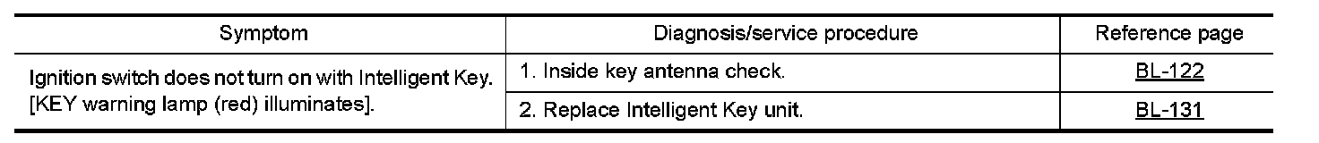 - Check if ignition switch turns using mechanical key. If it turns, check if "ENGINE START BY I-KEY" in