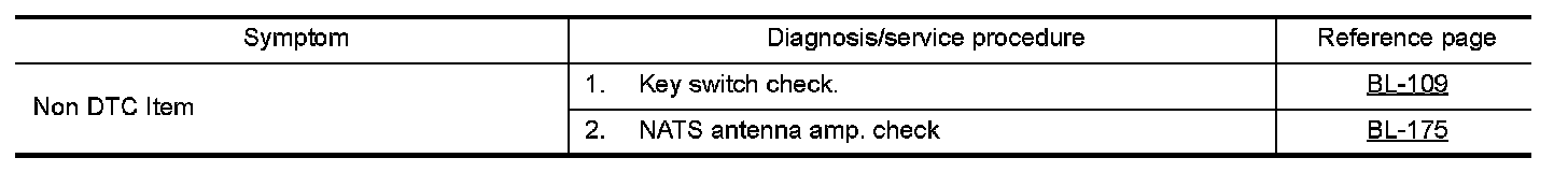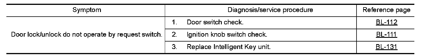- If the following "symptoms" are detected, check systems shown in the "Diagnosis/service procedure" column in this order.