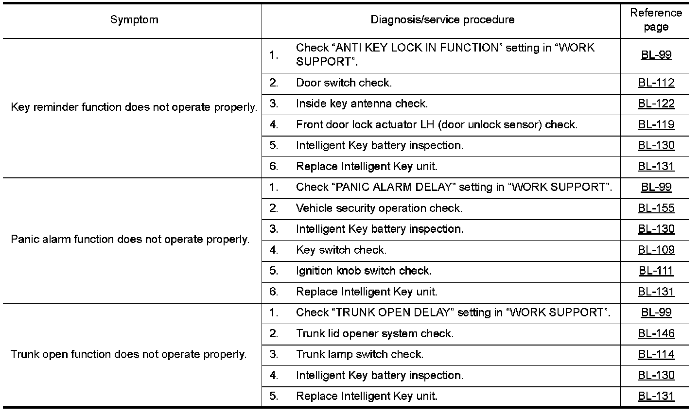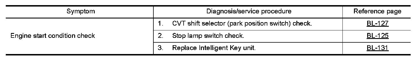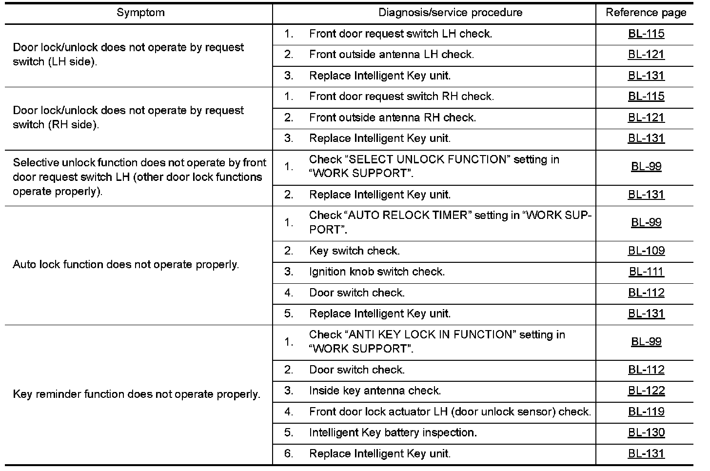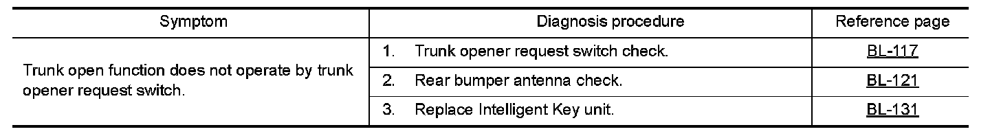 - Before performing the diagnosis in the following table, check "Trouble Diagnosis Procedure". Trouble Diagnosis Procedure .