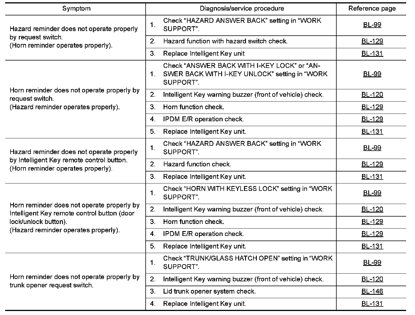 HAZARD AND HORN REMINDER FUNCTION MALFUNCTION
