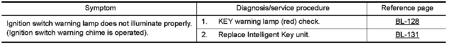 KEY WARNING LAMP DOES NOT ILLUMINATE