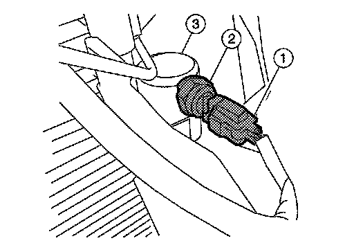 4.Disconnect the refrigerant pressure sensor connector (1) and remove the refrigerant pressure sensor (2) from the liquid tank (3).