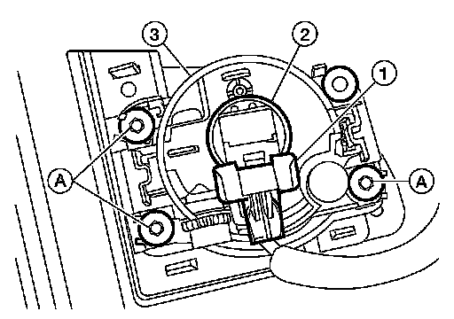 4.Remove the front fog lamp screws (A) and remove the front fog lamp (3).