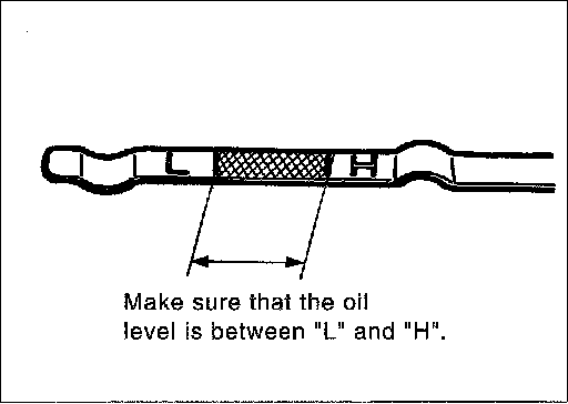 2.Insert oil level gauge and make sure the engine oil level is within the range as shown.