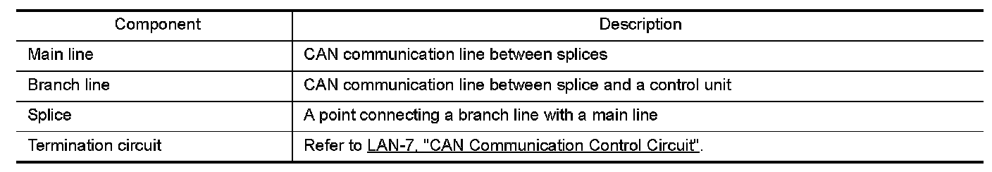 Each control unit passes an electric current to the termination circuits when transmitting CAN communication signal. The termination circuits produce an electrical potential difference between CAN-H and CAN-L. CAN