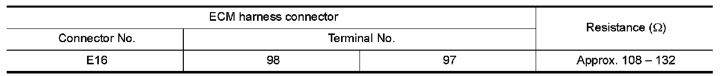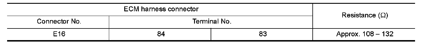 2.Check the resistance between the ECM harness connector terminals.