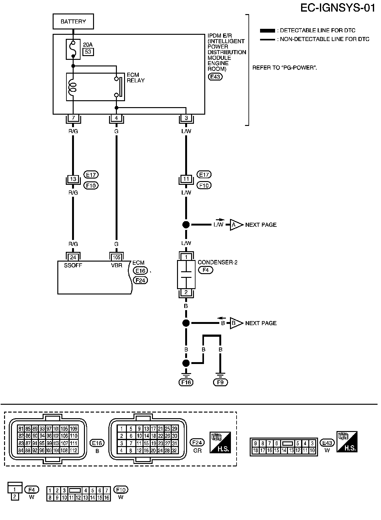3.Check harness continuity between IPDM E/R terminal 3 and condenser-2 terminal 1.