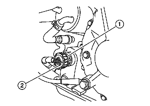 Rotate bayonet ring (1) counterclockwise, pull out CVT unit harness connector (2) outward and disconnect it.