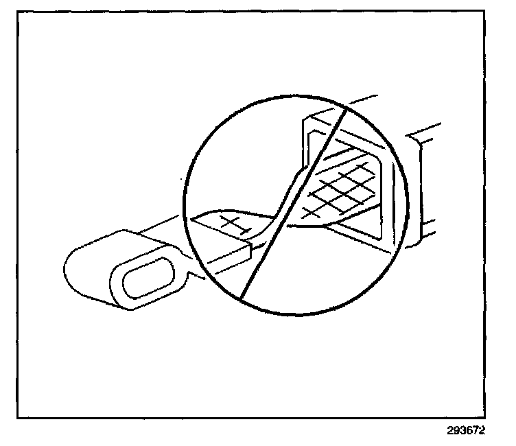 ^ Pull the cruise control cable (2) to verify retention to the ribbon (1).