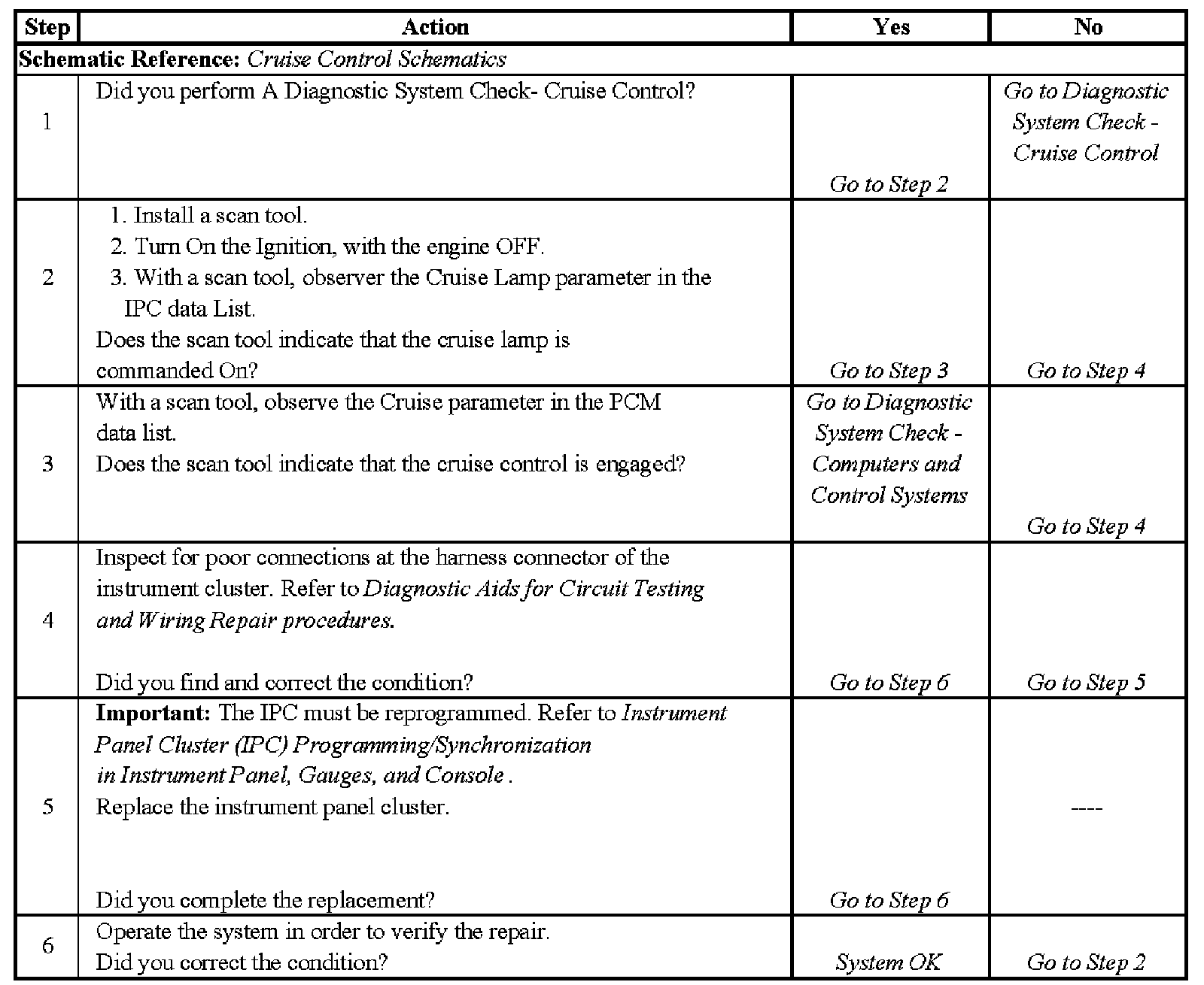Cruise Control Indicator Always On - Steps 1-6: