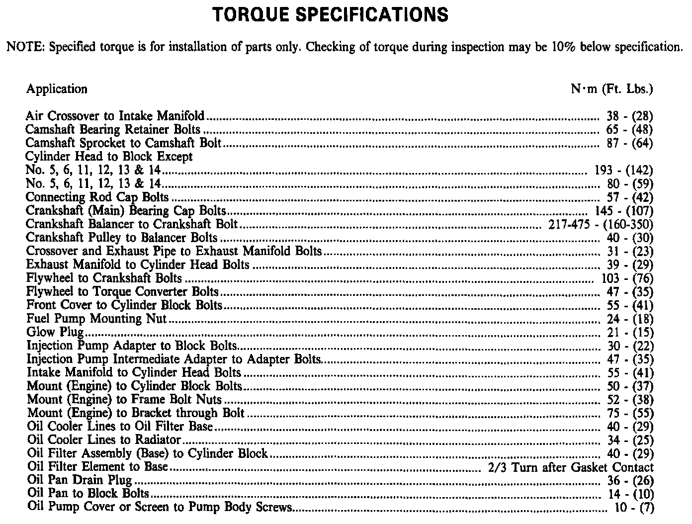 Torque Specifications: