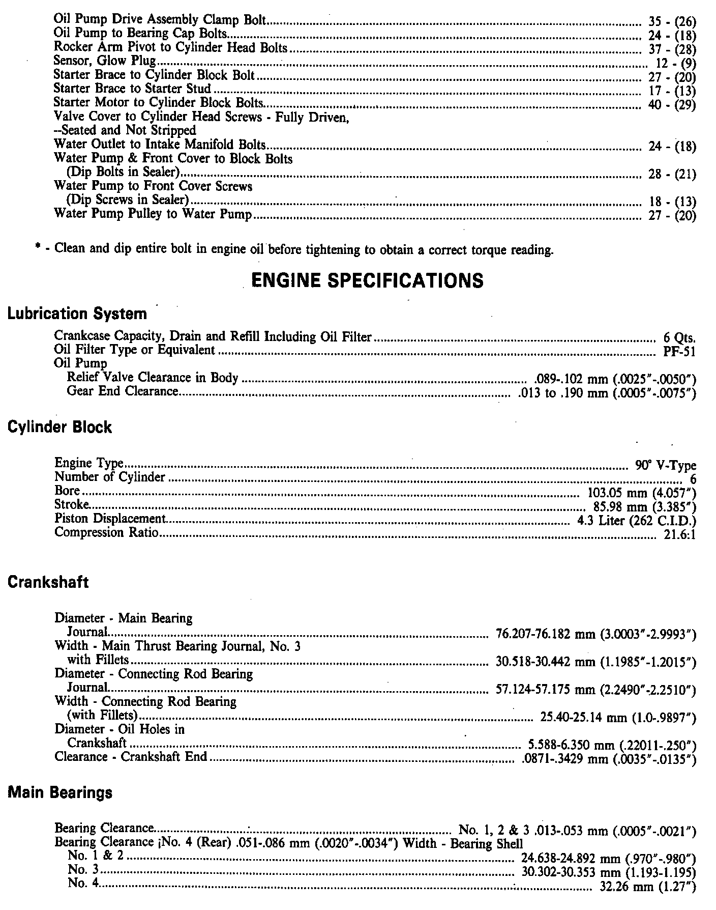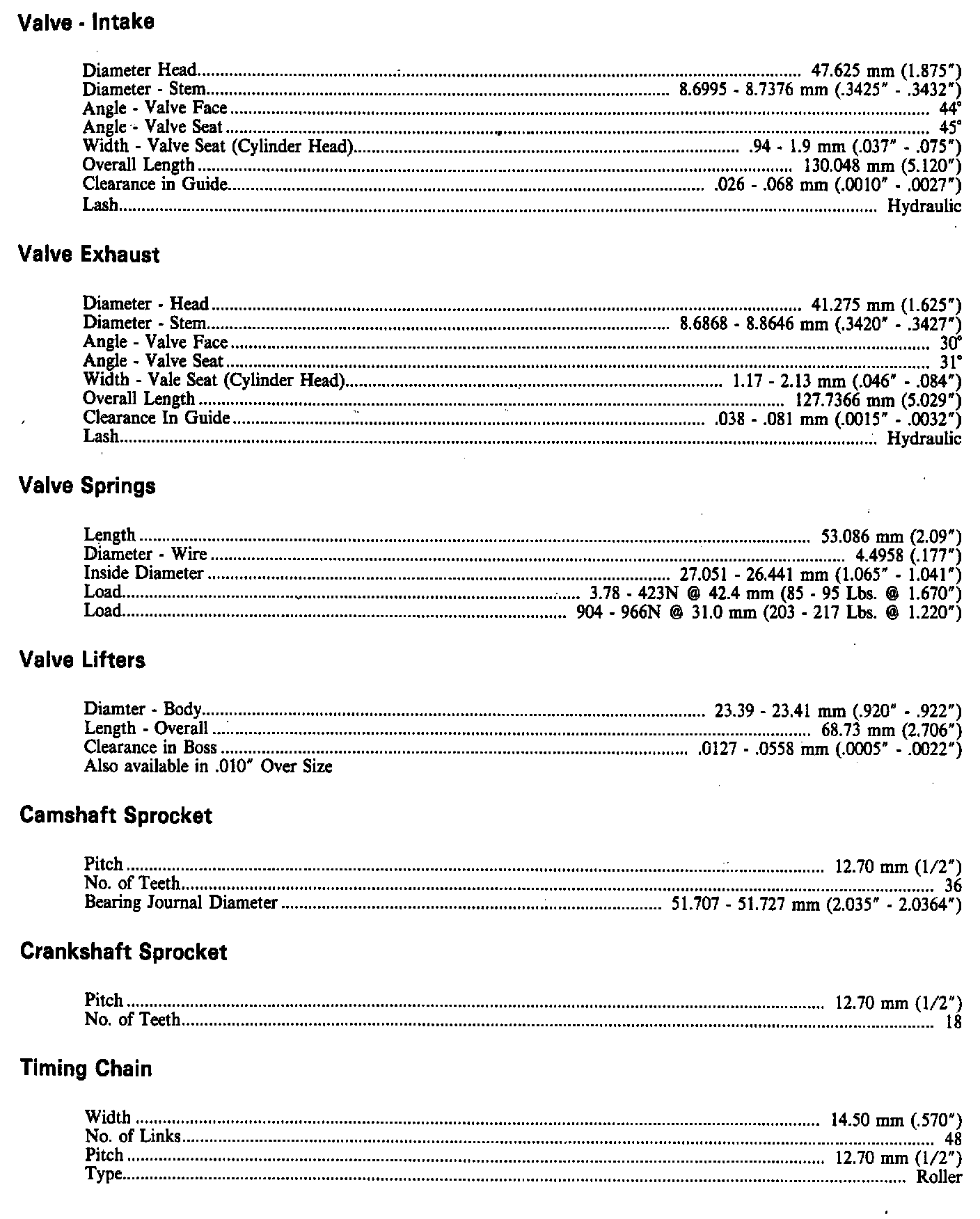 Engine Specifications:
