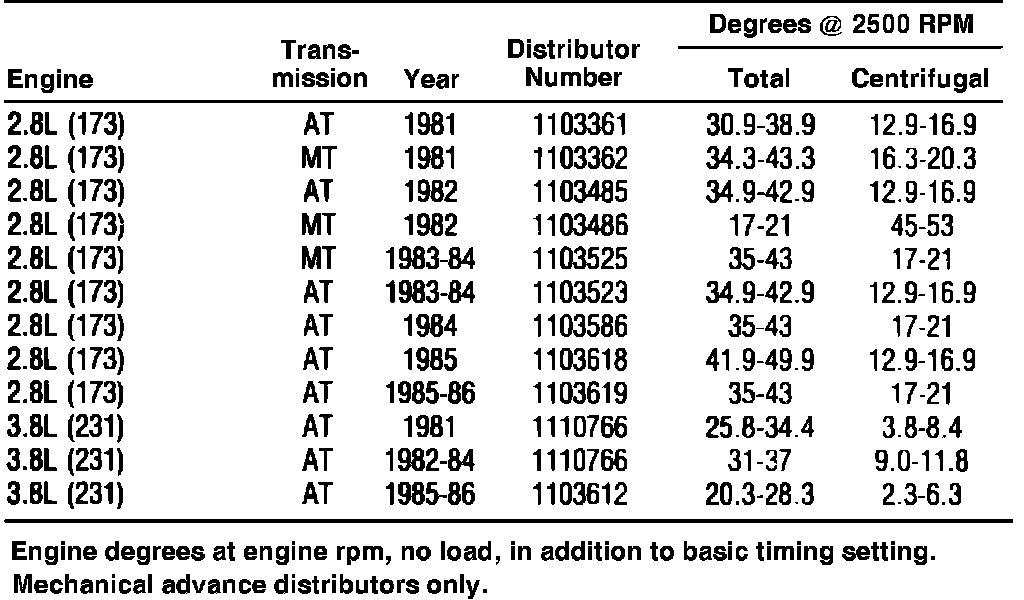 Distributor Timing Advance Specifications: