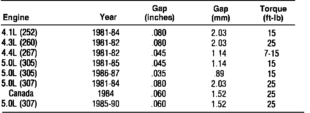 Spark Plug Specifications: