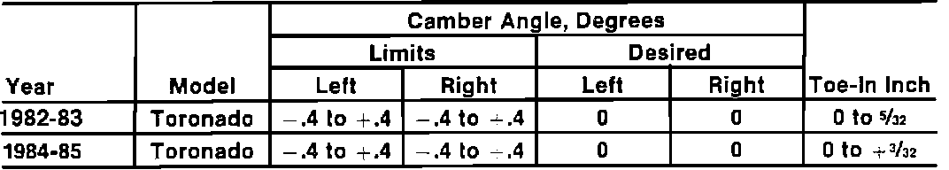 Rear Wheel Alignment Specifications: