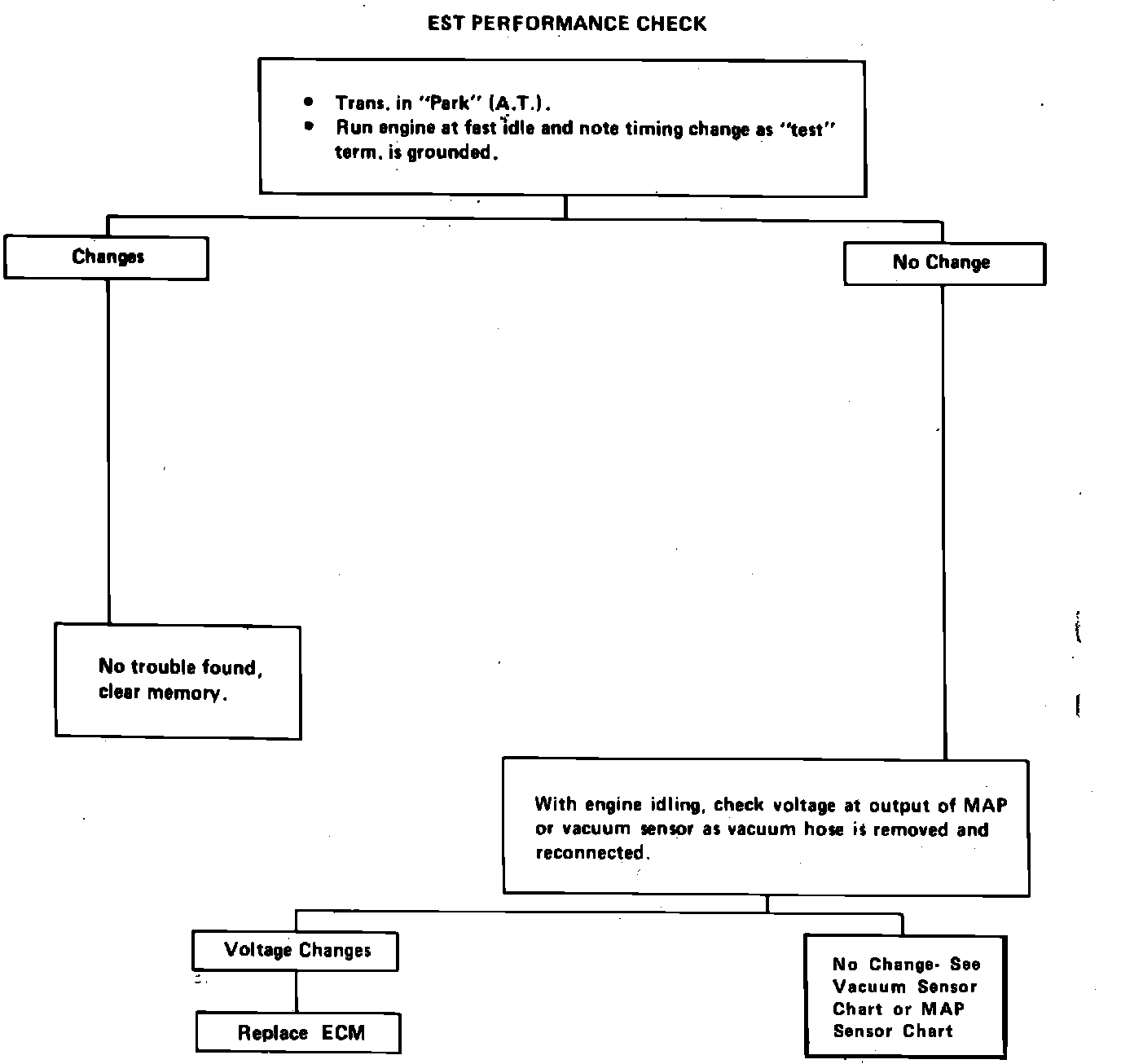 Fig.4a EST performance check. Oldsmobile carbureted models w/V8-307/5.0L(VIN codes Y & 9):
