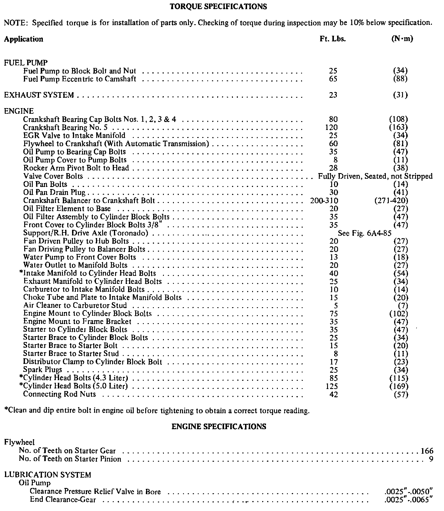 Torque Specifications: