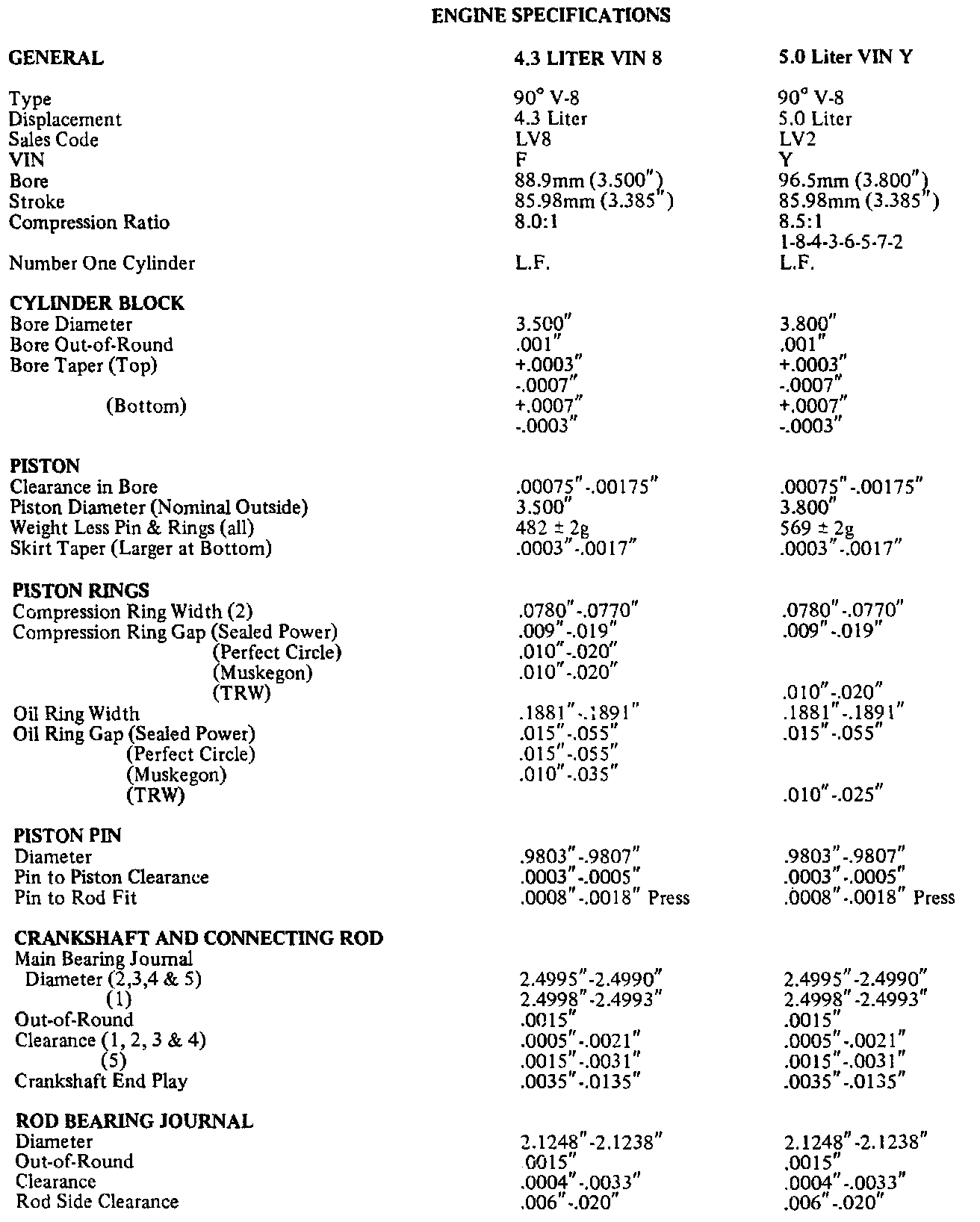 Engine Specifications:
