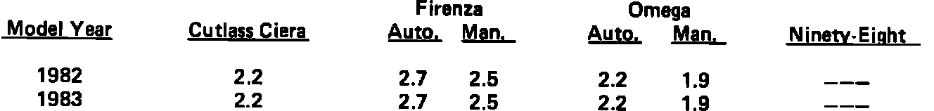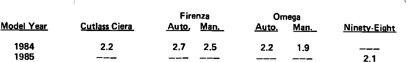 MODELS/YEARS OMEGA AND 1985 NINETY-EIGHT MODELS