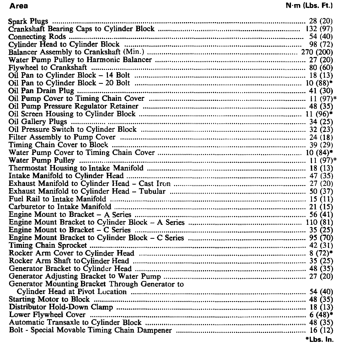 Torque Specifications: