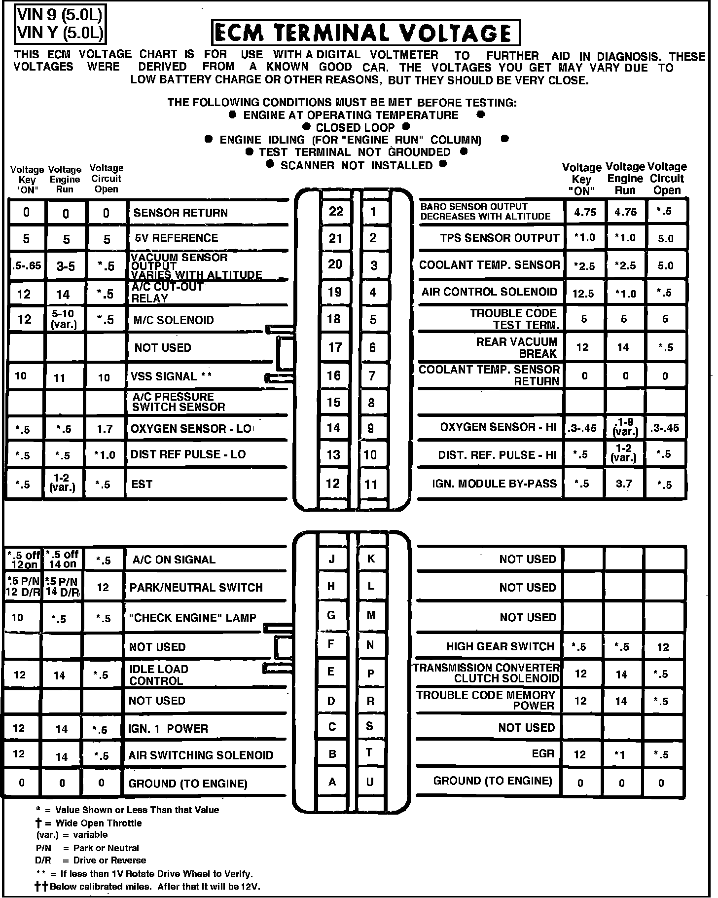 Fig. 012 - ECM Terminal Identification & Voltage Specifications.: