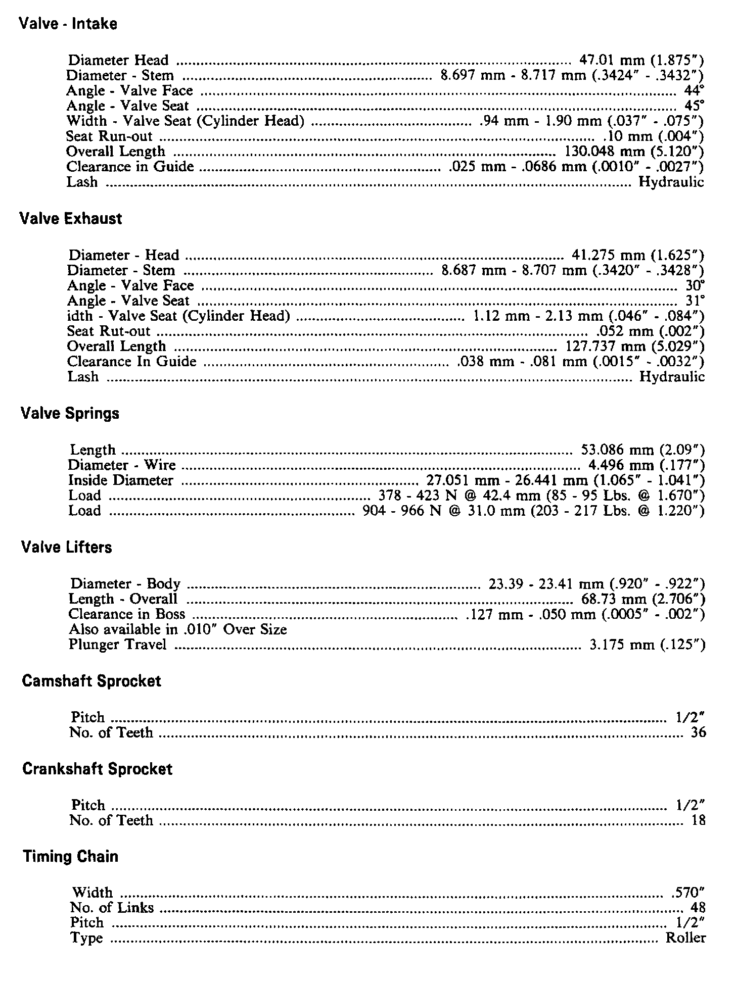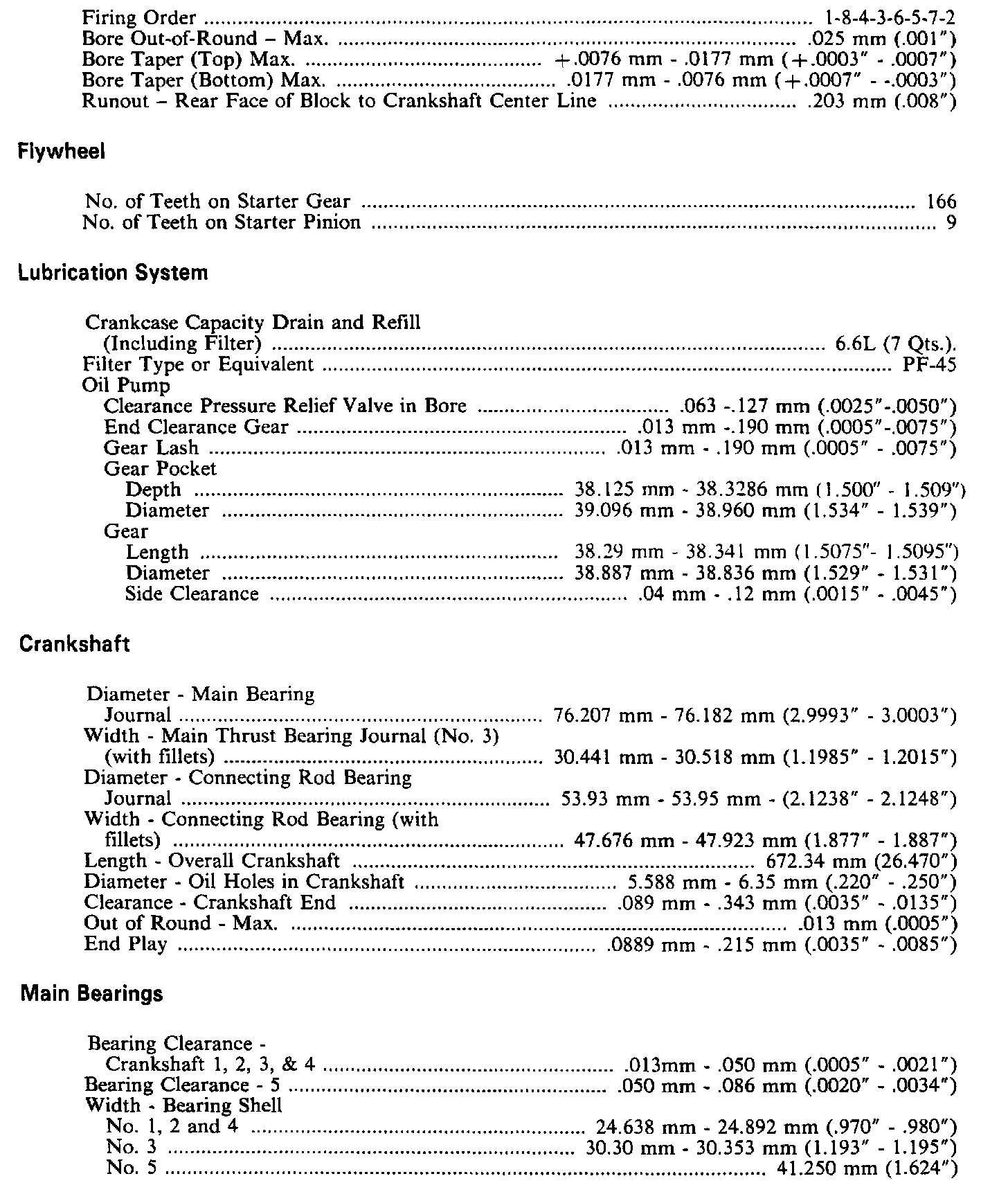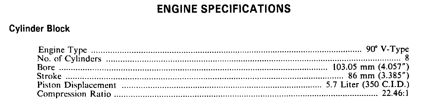 Continued Engine Specifications: