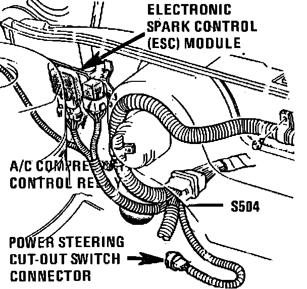 The Electronic Spark Control Module is located on the RH rear corner of engine compartment, on dash.