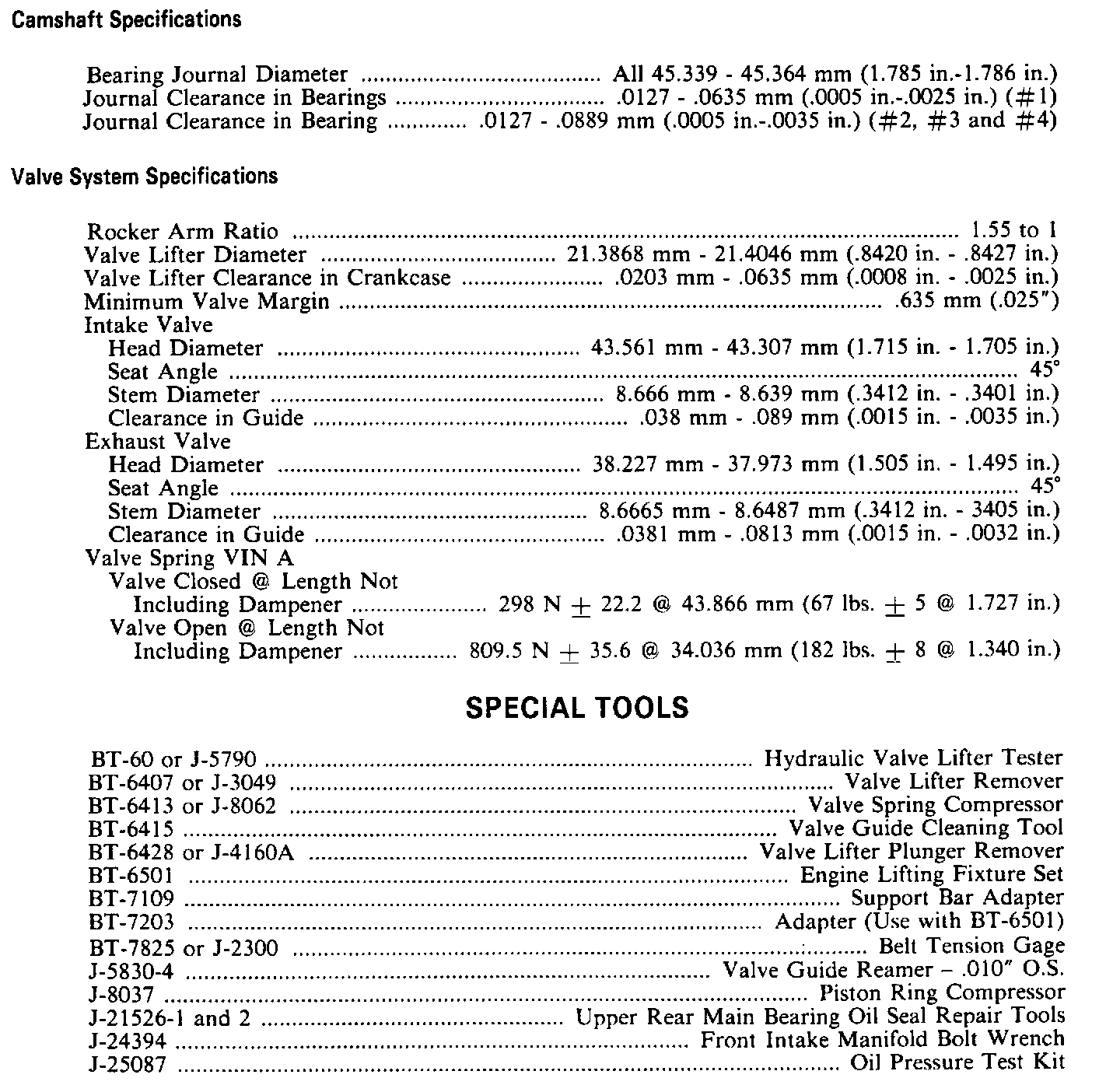 Engine Specifications: