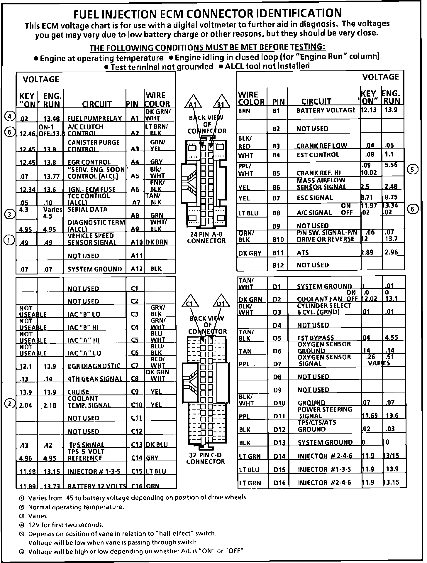 ECM Connector Terminal End View: