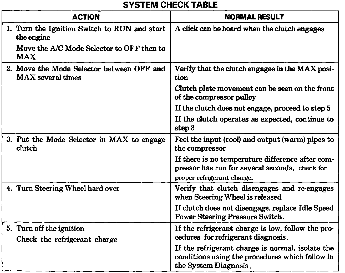 ^ Complete the A/C System Check in as a guide to normal operation of the A/C System. Testing and Inspection