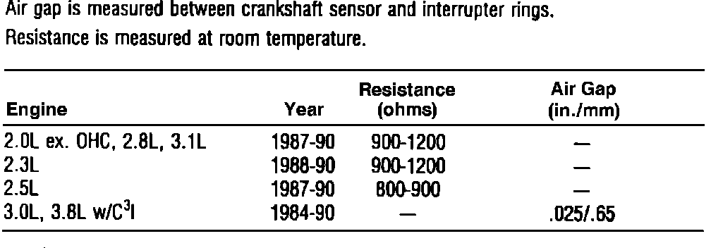 Crankshaft Position Sensor: Specifications