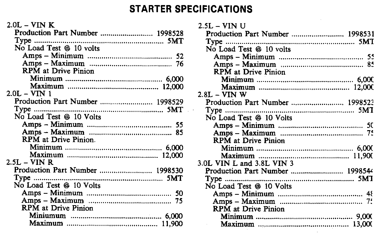 STARTER SPECIFICATIONS