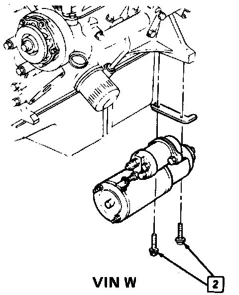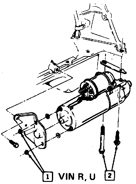 ON VIN R, U & 1 install nuts/bolts that hold the starter bracket to the starter and engine.