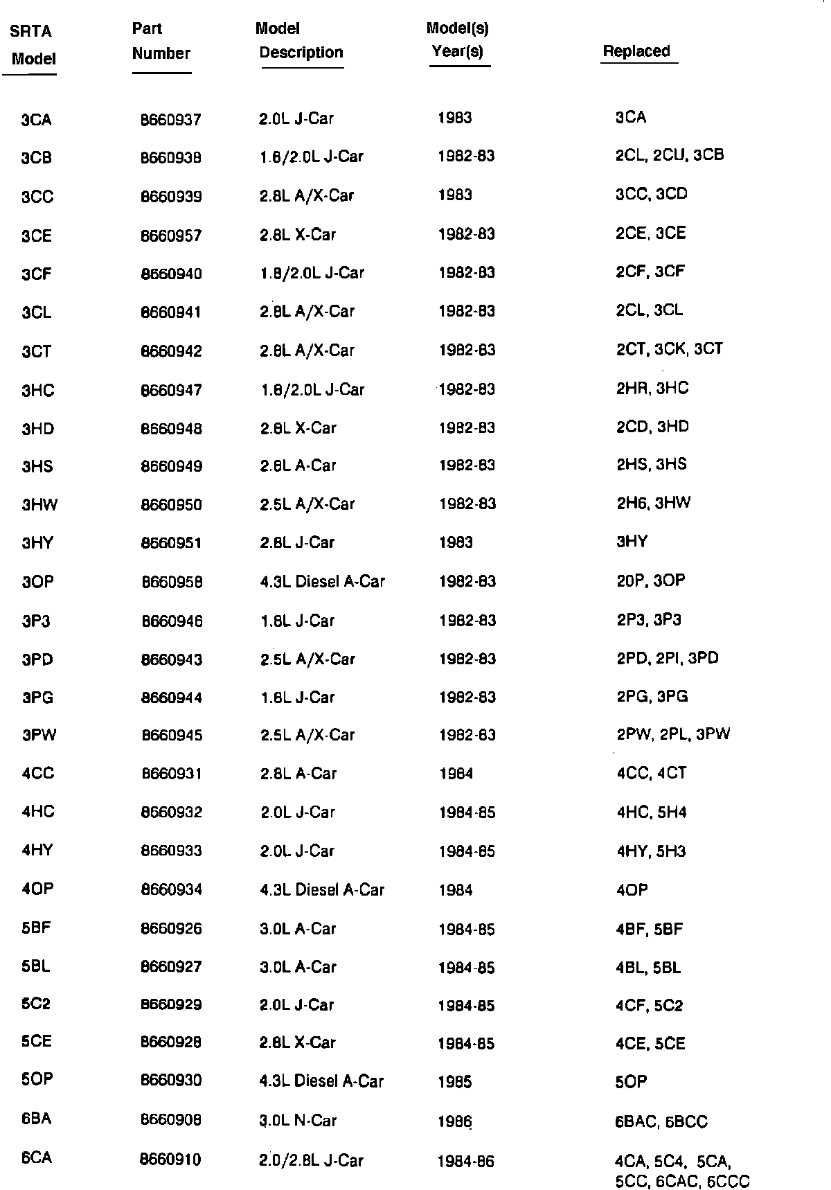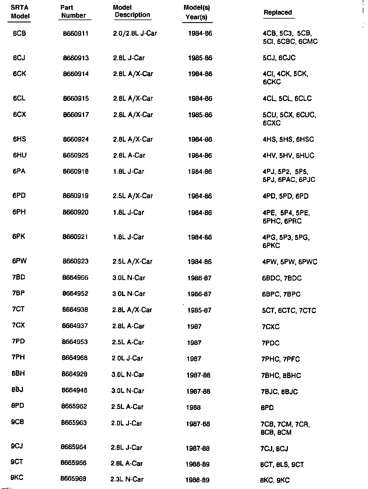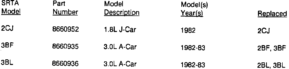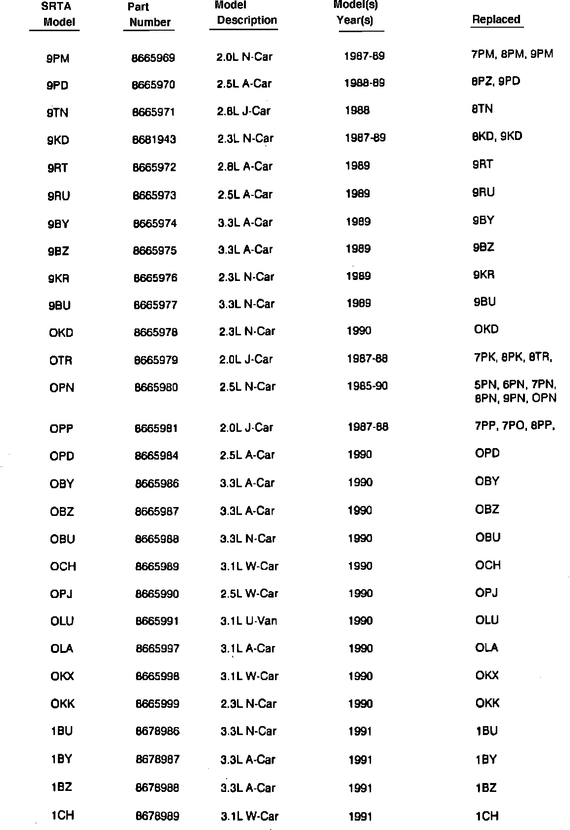 THIS BULLETIN REPLACES DEALER INFORMATION BULLETIN 90-I-26 WHICH HAS BEEN REVISED TO CHANGE INFORMATION UNDER "SERVICE PARTS INFORMATION" AND TO ADD 1991 SRTA MODEL APPLICATIONS.