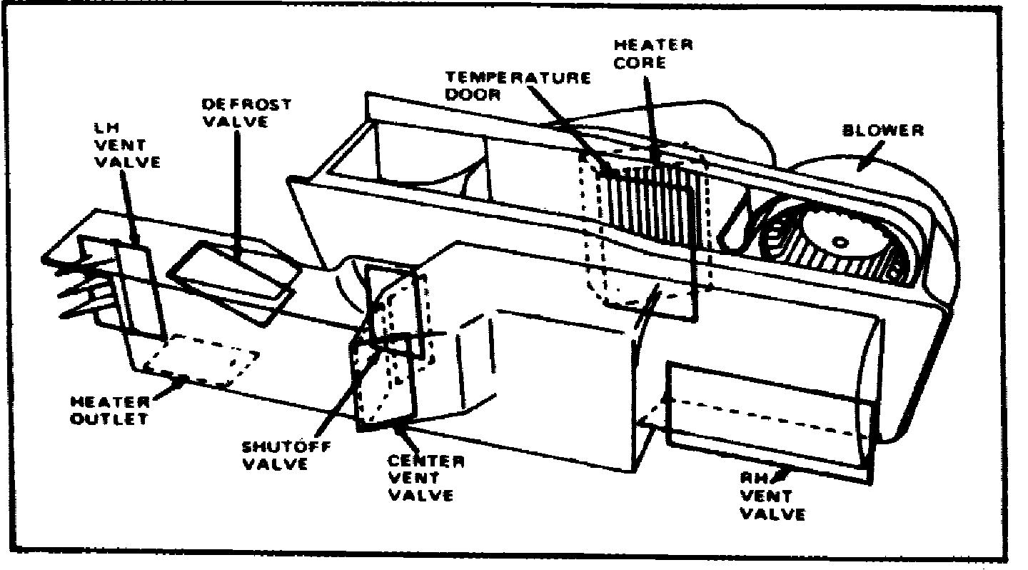 Fig. 17 Heater core & blower motor (less air conditioning). 88, 98 & Custom Cruiser: