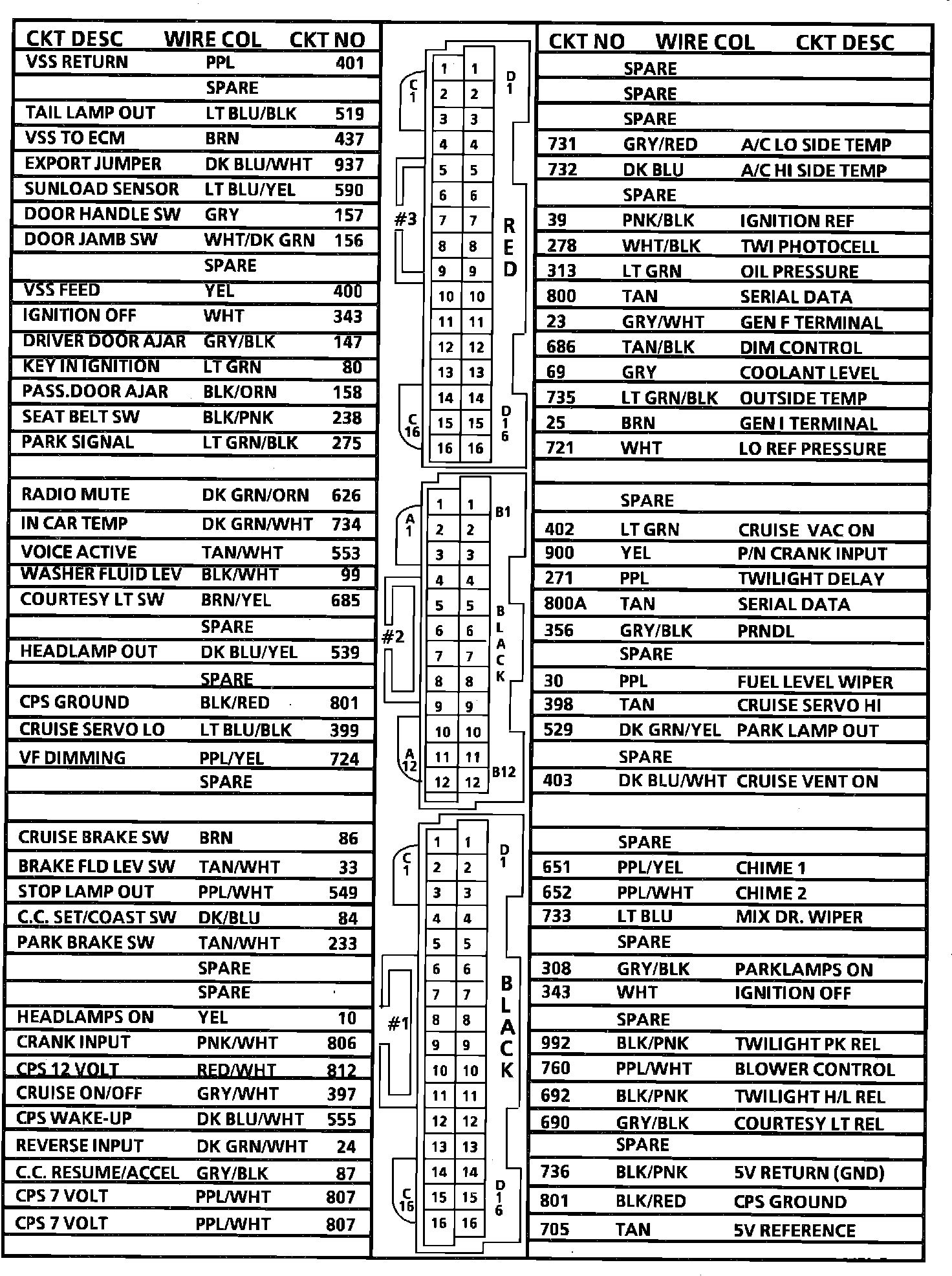 BCM Connector Back View: