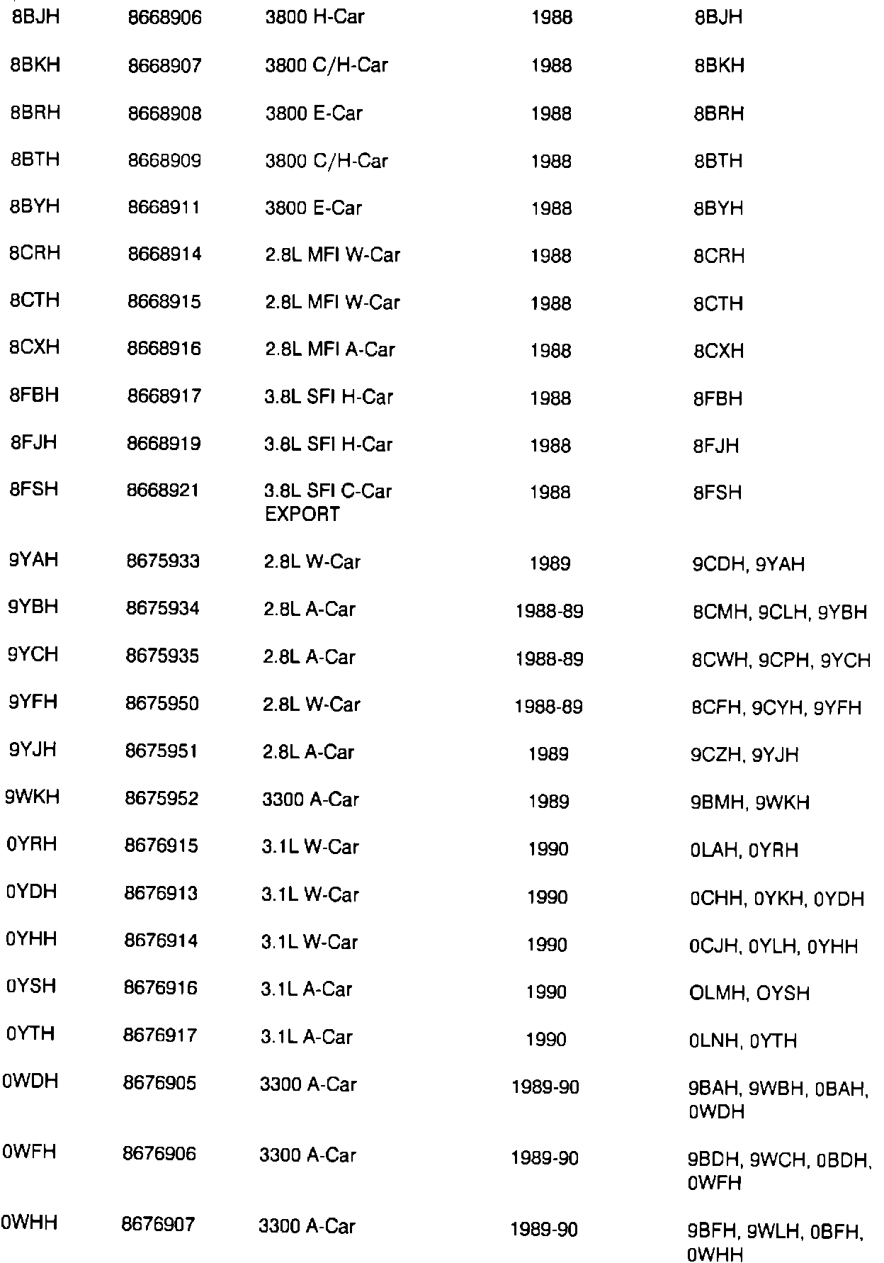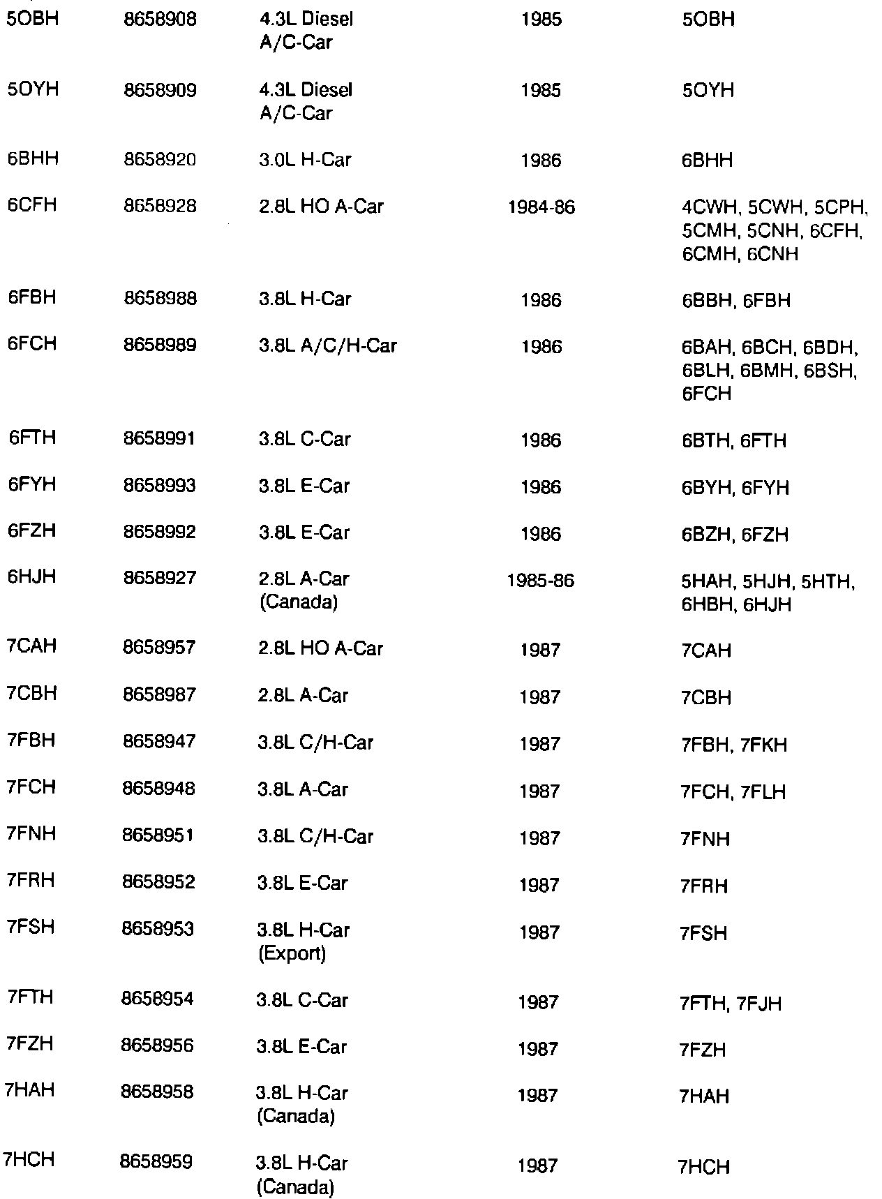 MODELS/YEARS ALL 1984-1990 MODELS EQUIPPED WITH HYDRA-MATIC 4T60