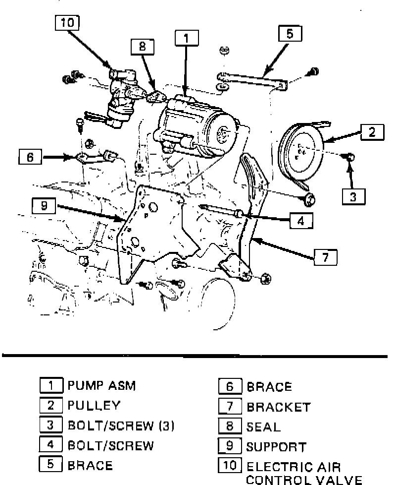 2. Remove hoses, electrical and vacuum connections from pump, then the mounting belts and pump.