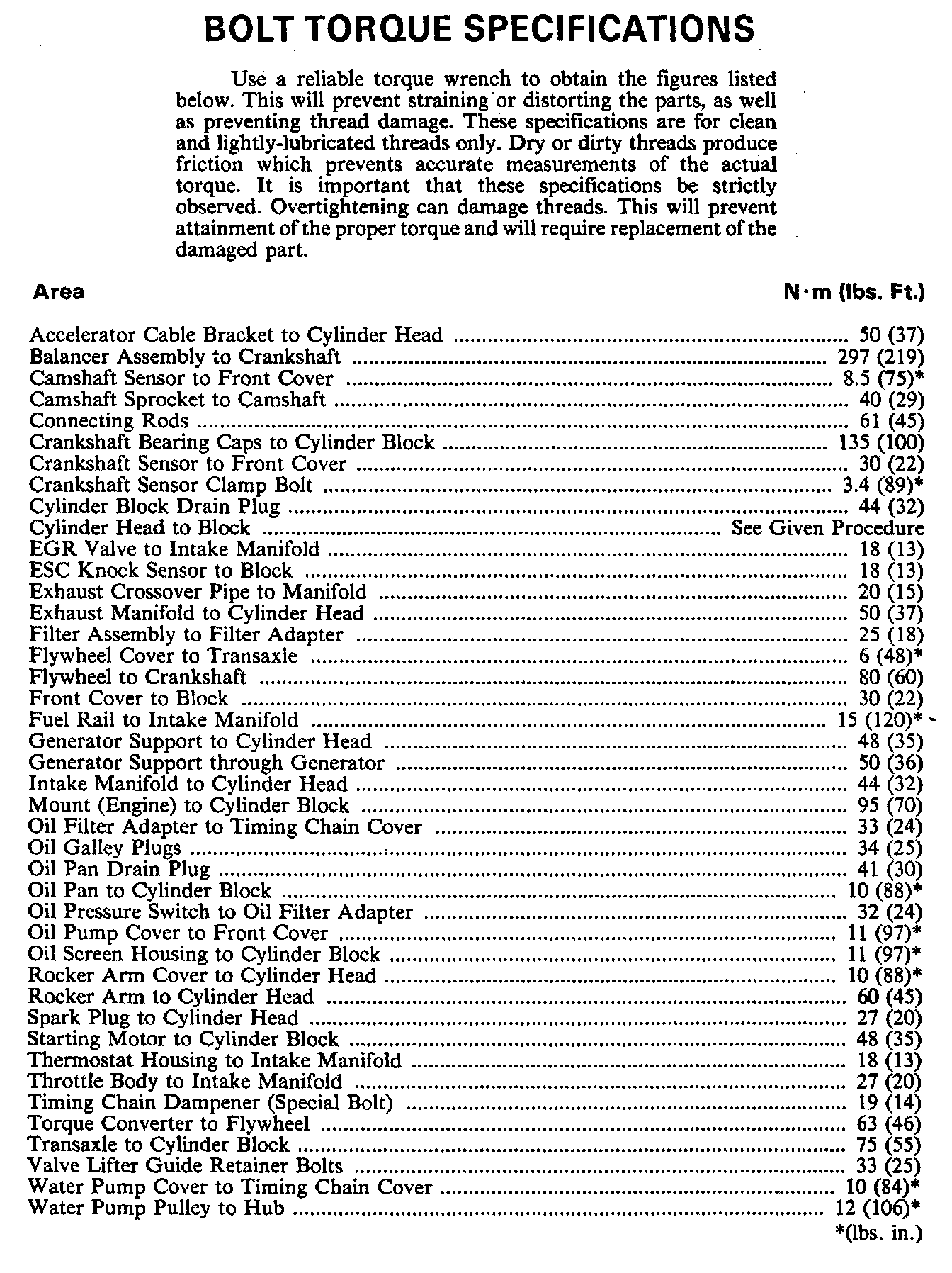 Torque Specifications: