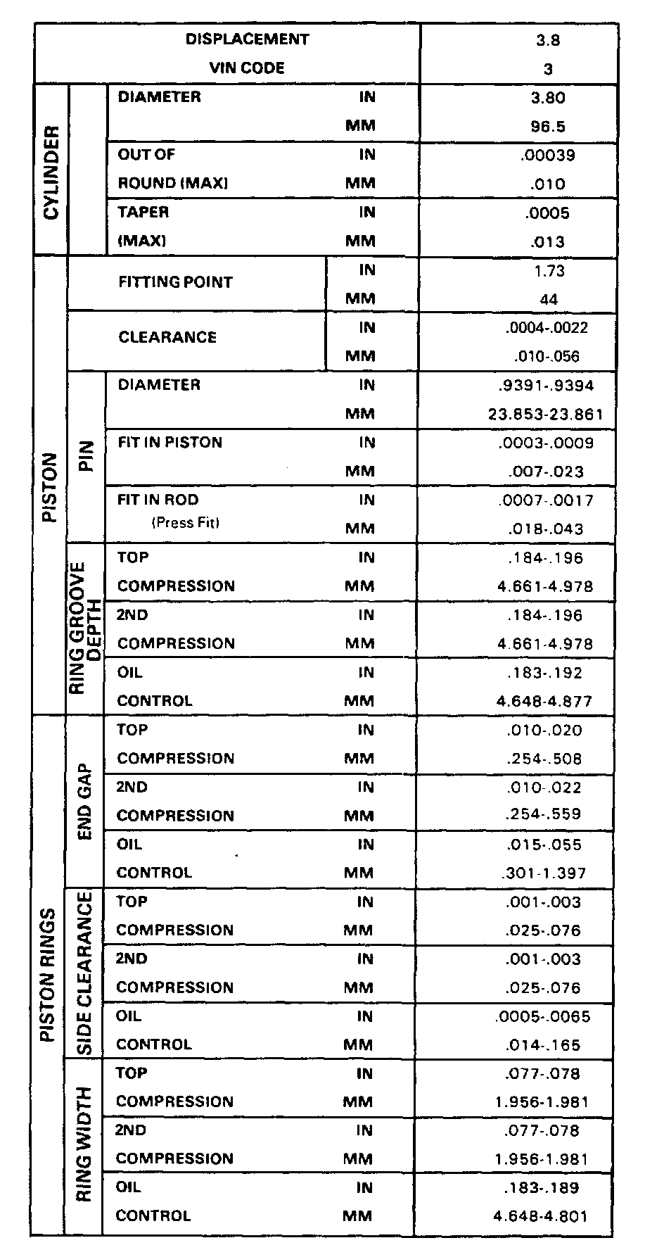 Engine Specifications: