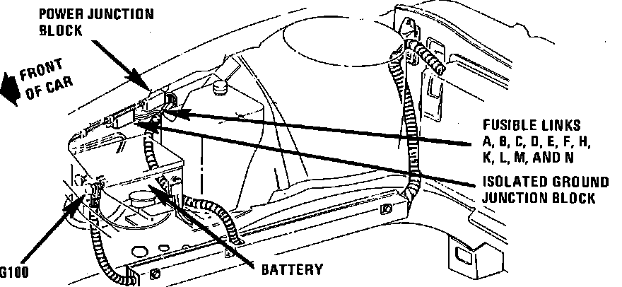 RH Front Of Engine Compartment, Behind Battery
