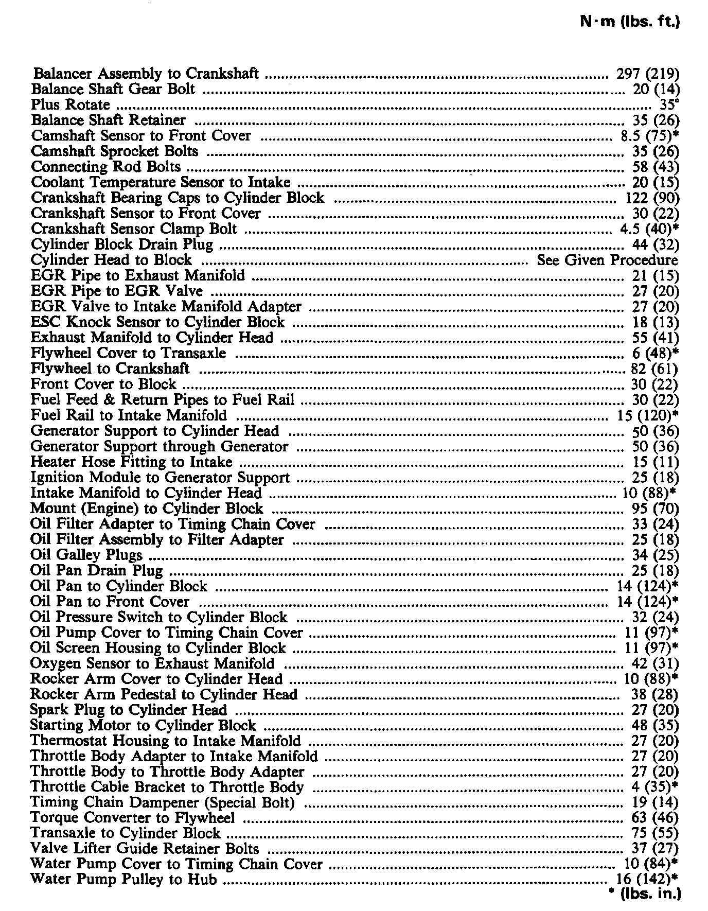 Torque Specifications: