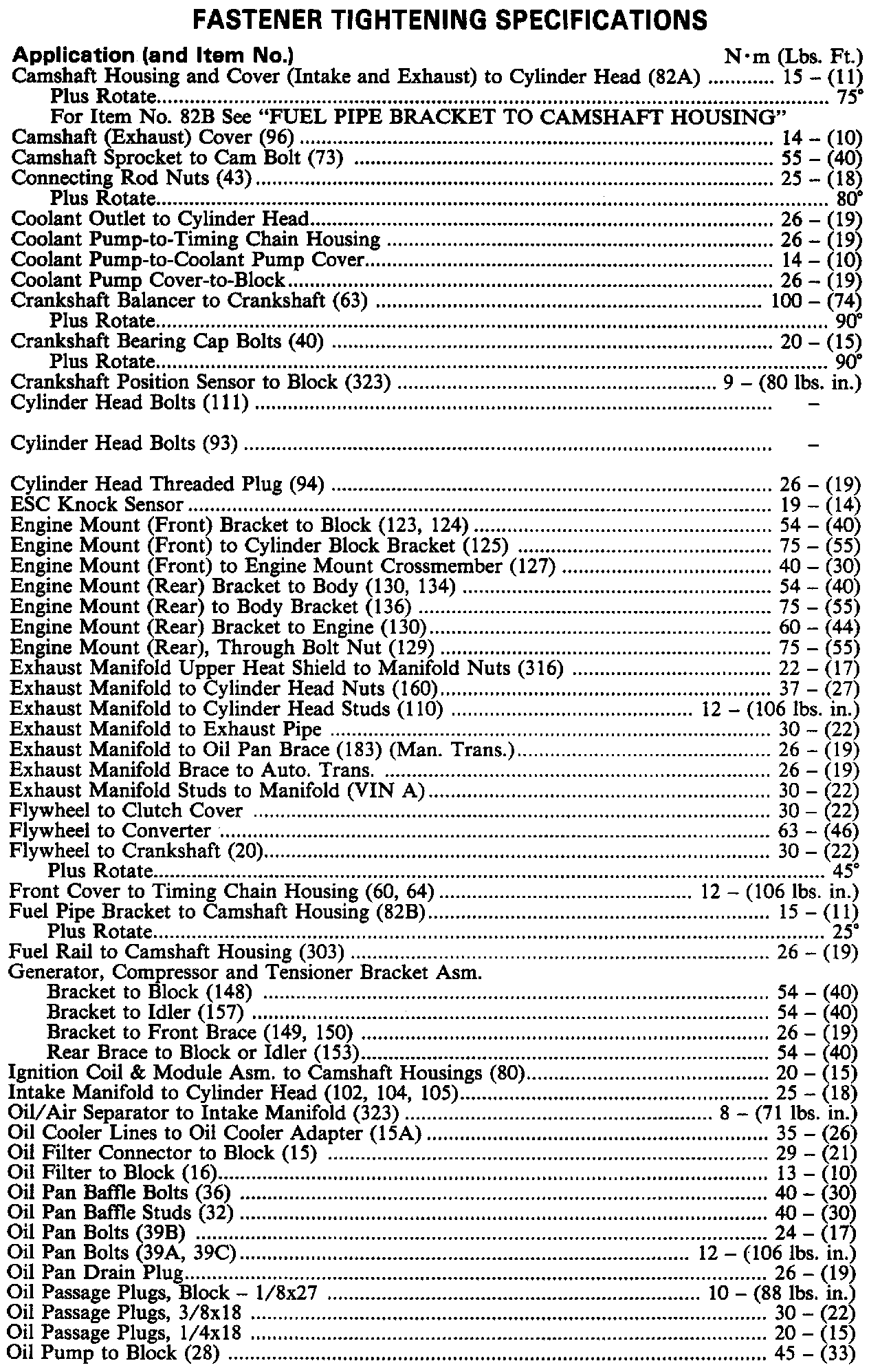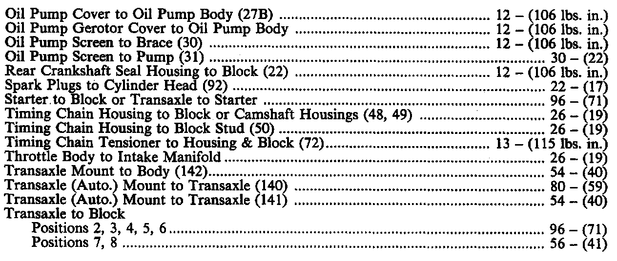 Torque Specifications: