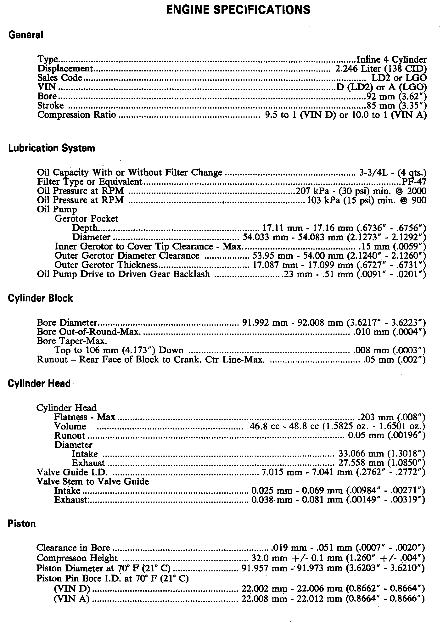 Calais L4-138 2.3L VIN D FI