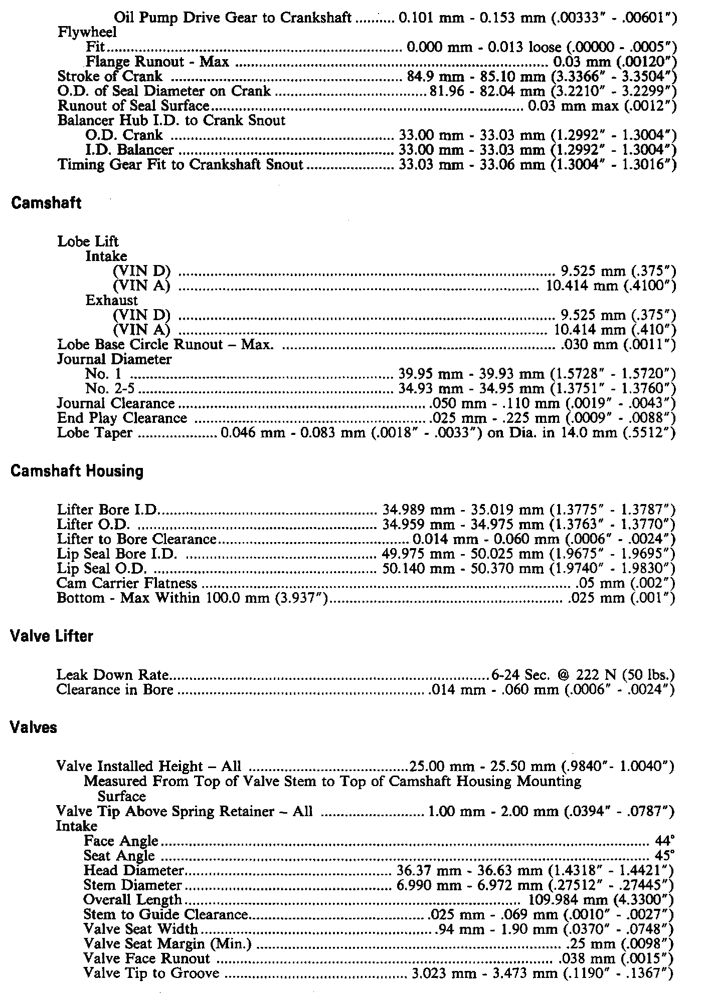 Engine Specifications: