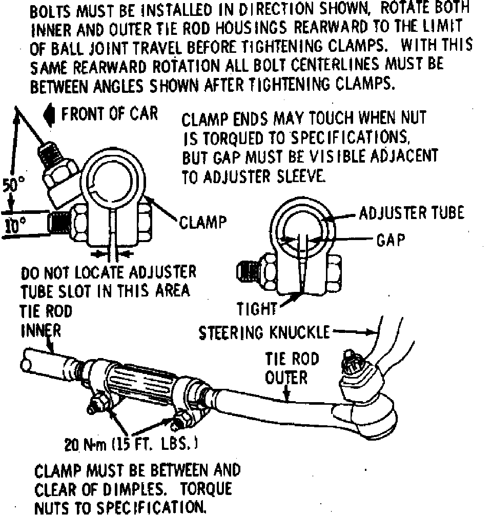 Fig. 3 Tie rod clamp & sleeve positioning. Exc. Toronado: