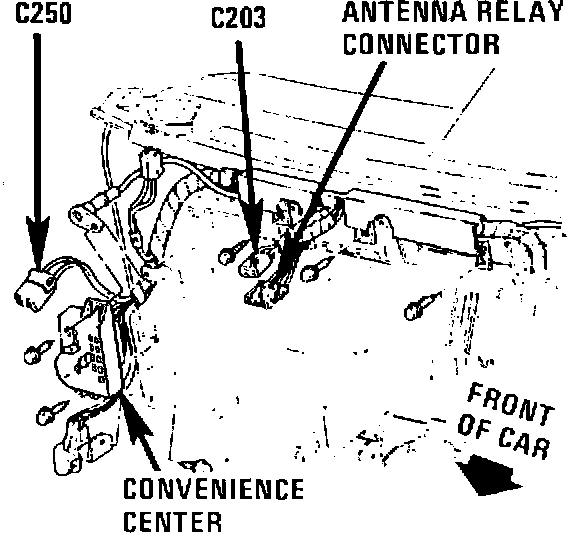 The Audio Alarm Module is located in the Convenience Center. The Convenience Center is located behind RH side of I/P, near shroud.