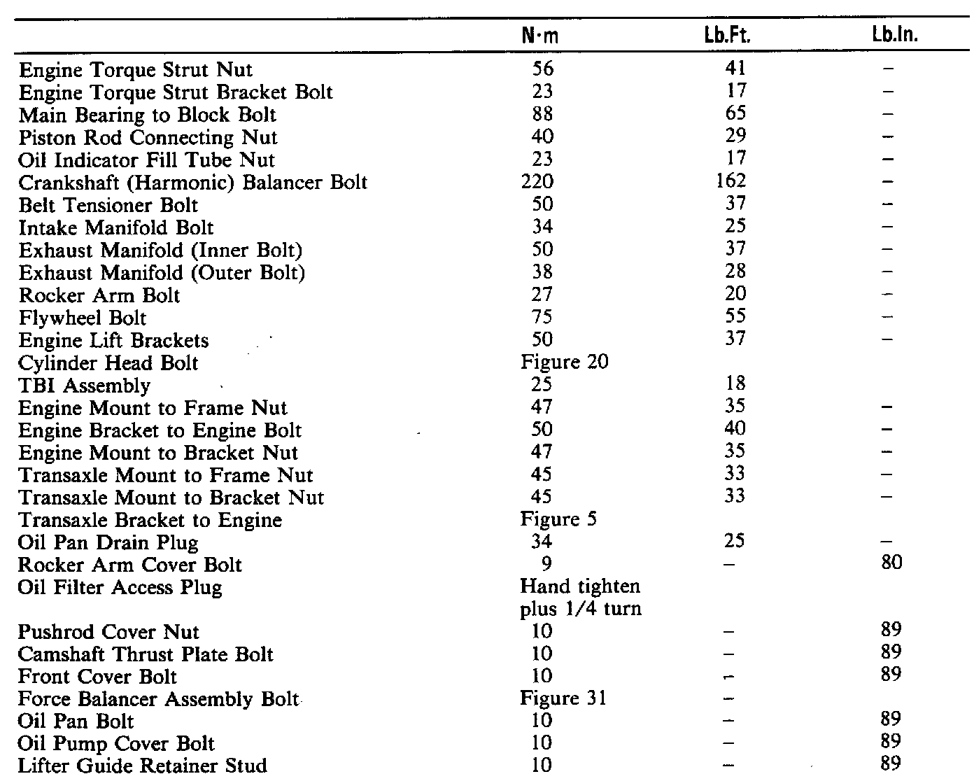 Torque Specifications:
